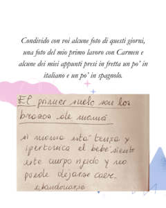 Condivido con voi alcune foto di questi giorni, una foto del mio primo lavoro con Carmen e alcune dei miei appunti presi in fretta un po’ in italiano e un po’ in spagnolo.